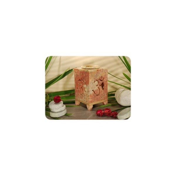 Lamparilla de piedra con forma cuadrada con el símbolo de Om.