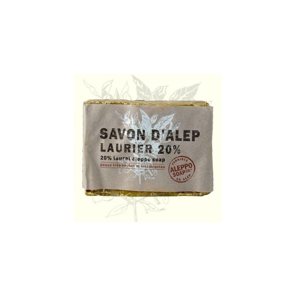 Auténtico jabón de Alepo, sobregraso, para pieles muy secas e intolerantes. Jabón de primera calidad, muy rico en aceites de oliva y laurel (20%) de calidad superior, rico en insaponificables y ácidos grasos imprescindibles.