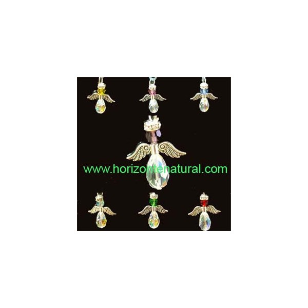 Colgante hecho con cristal y metal bañado en plata con forma de Ángel. Incluye cordón del algodón de color gris engarzado.