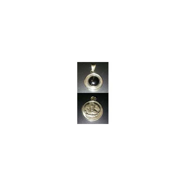 Colgante en cuyo frontal tiene una obsidiana en relieve y por detrás, el símbolo del sol, de la riqueza.