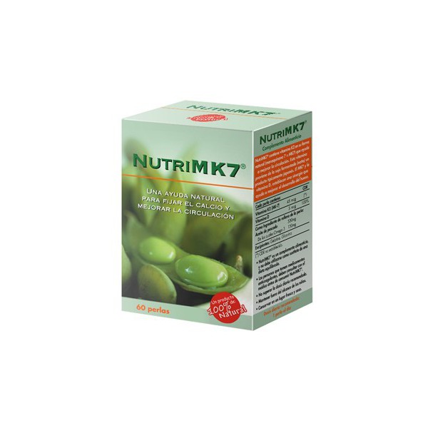NutriMK7® es un complemento alimenticio compuesto de vitamina K2 en su forma natural (menaquinona 7 = MK7), extraída de un producto típicamente japonés, el natto (soja fermentada), y vitamina D. La menaquinona 7 (MK7) es una forma de vitamina K altamente biodisponible que ayuda a promover la remineralización de los huesos y un saludable sistema cardiovascular. La vitamina K activa una proteína denominada osteocalcina, imprescindible para que el calcio pueda construir un tejido óseo sano. Esta vitamina presenta diferentes formas activas. Una de ellas, la vitamina K2, en su forma de menaquinona 7 (MK7), es además esencial para nuestras arterias, venas y corazón, al activar otra proteína necesaria (la proteína GLA de la matriz), necesaria para que los tejidos vasculares puedan utilizar debidamente el calcio y eliminar su exceso. Por ello se ha vinculado a dos importantes cuestiones: la salud ósea y la salud cardiovascular.