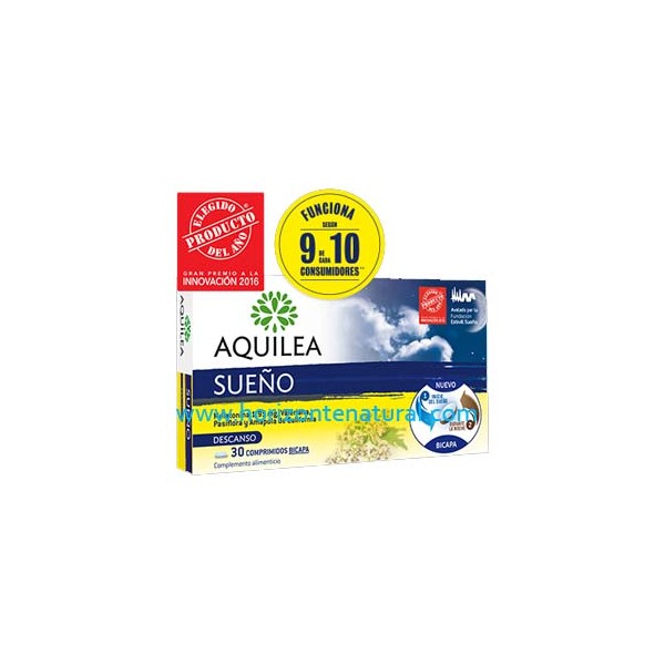Aquilea Sueño se presenta en un innovador comprimido bicapa, especialmente estudiado para que sus ingredientes se liberen a medida que son necesarios. La primera capa, con melatonina, se libera rápidamente. La segunda capa, con extractos de plantas como la valeriana, la pasiflora y la amapola, se libera a lo largo de la noche para contribuir a un sueño reparador.